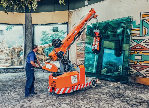 - MPK20. Модель очень удобная и универсальная. Мини-кран не только поднимает грузы весом в 2 т, но и перевозит их по ровной поверхности на ограниченном пространстве. Он может передвигаться по узким проходам и выполнять работы по остеклению благодаря вакуумным манипуляторам.