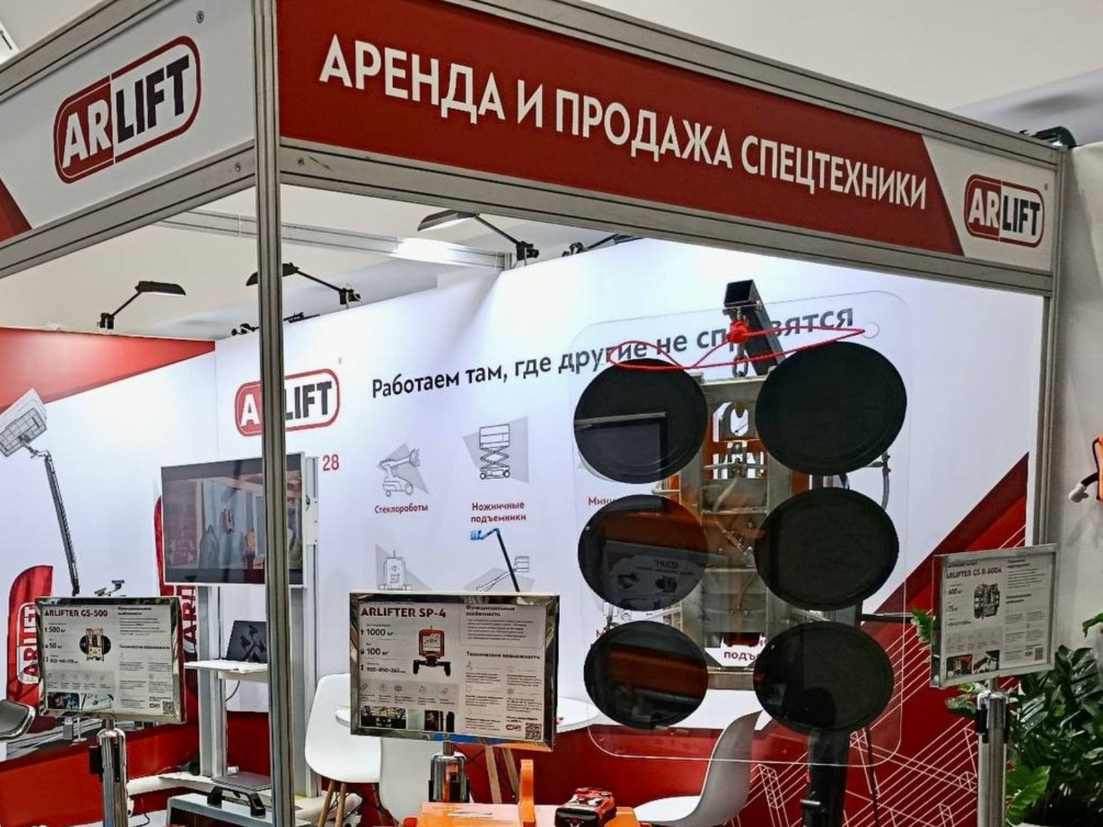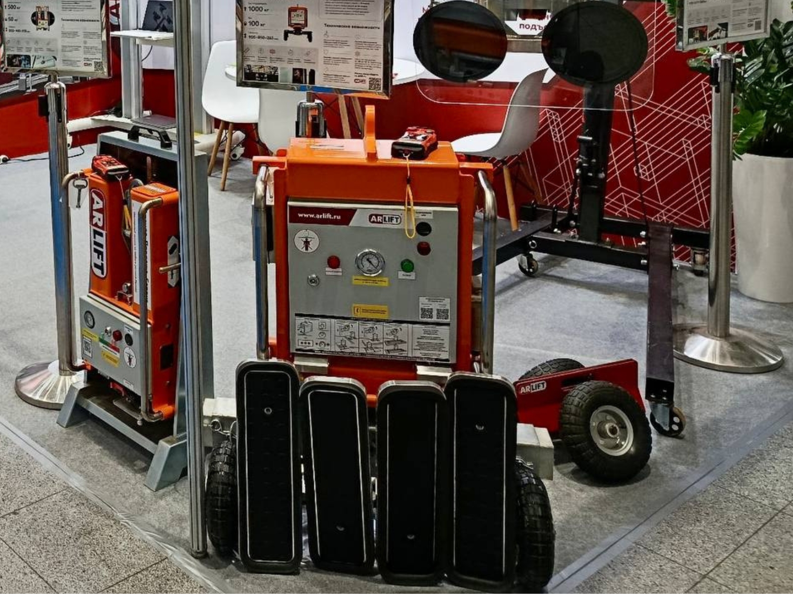 В выставочной зоне мы презентовали линейку вакуумных захватов собственного производства — ARLIFTER SP-4, ARLIFTER FR 2500А и ARLIFTER GS-R-600A. Оборудование закрывает большинство задач по монтажу стекла, светопрозрачных конструкций и сэндвич-панелей — без риска для материалов и значительно быстрее ручного формата.