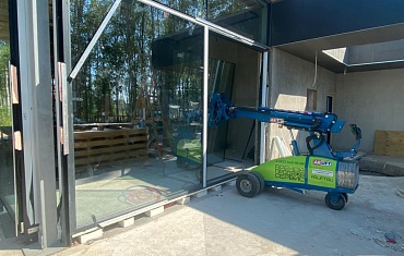 Мини-кран SPX527 и стекломанипулятор MR 800.4 помогли с заменой стеклопакетов в одном из современных загородных комплексов.
