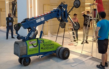 Стеклоробот компании Арлифт помог с установкой витринных стекол в одном из ТЦ города.