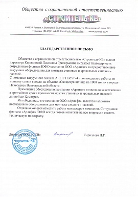Отзыв от ООО "Строитель-КВ"
