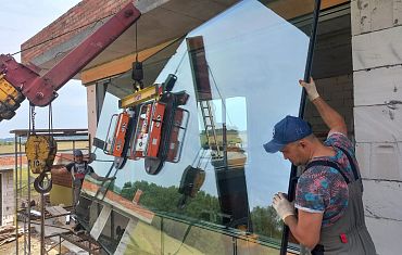 Вакуумное оборудование Арлифт на траверсе помогло с монтажом стеклопакетов весом более 1300 кг в Челябинске.
